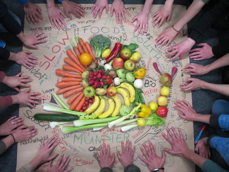 Die Mitglieder von Slow Food Youth Münster treffen sich etwa alle zwei Wochen in gemütlicher Runde, um sich über aktuelle Themen auszutauschen und Aktionen zu planen. Dabei darf der kulinarische Genuss natürlich nicht fehlen. Zu einem wechselnden Motto wie z.B. „Spezialitäten aus dem Münsterland“ werden von den Teilnehmern selbstgemachte Köstlichkeiten mitgebracht. In diesem Jahr hat sich das Team viel vorgenommen. Neben vielen kleineren Aktionen, organisiert die Gruppe im Rahmen des Tages der Nachhaltigkeit „Anders Leben! Aber wie?“ in Münster am 27.6.2015 auf dem Servatiiplatz eine große Schnippeldisko. Hier werden bei ordentlichen Beats gerettete Lebensmittel geschnippelt, gekocht und anschließend gemeinsam gegessen. Am Wochenende vom 23.-25.10.2015 gibt es zudem das Food Film Festival. Neben gezeigten Spiel- und Dokumentarfilmen, sollen Workshops, Ausstellungen, ein Street Food Markt und Vorträge angeboten werden.
